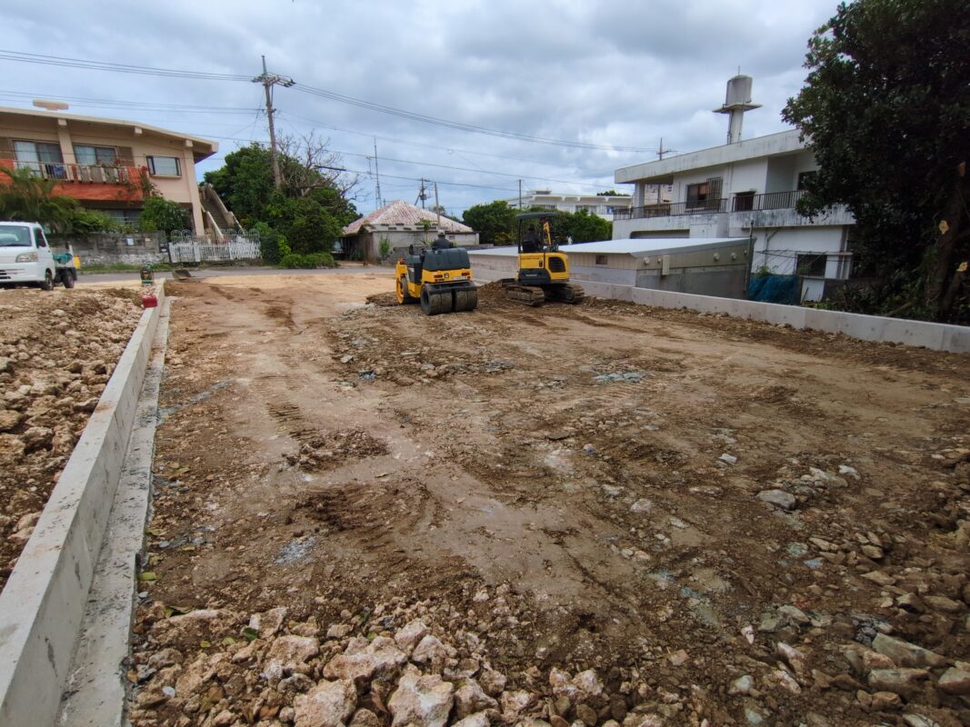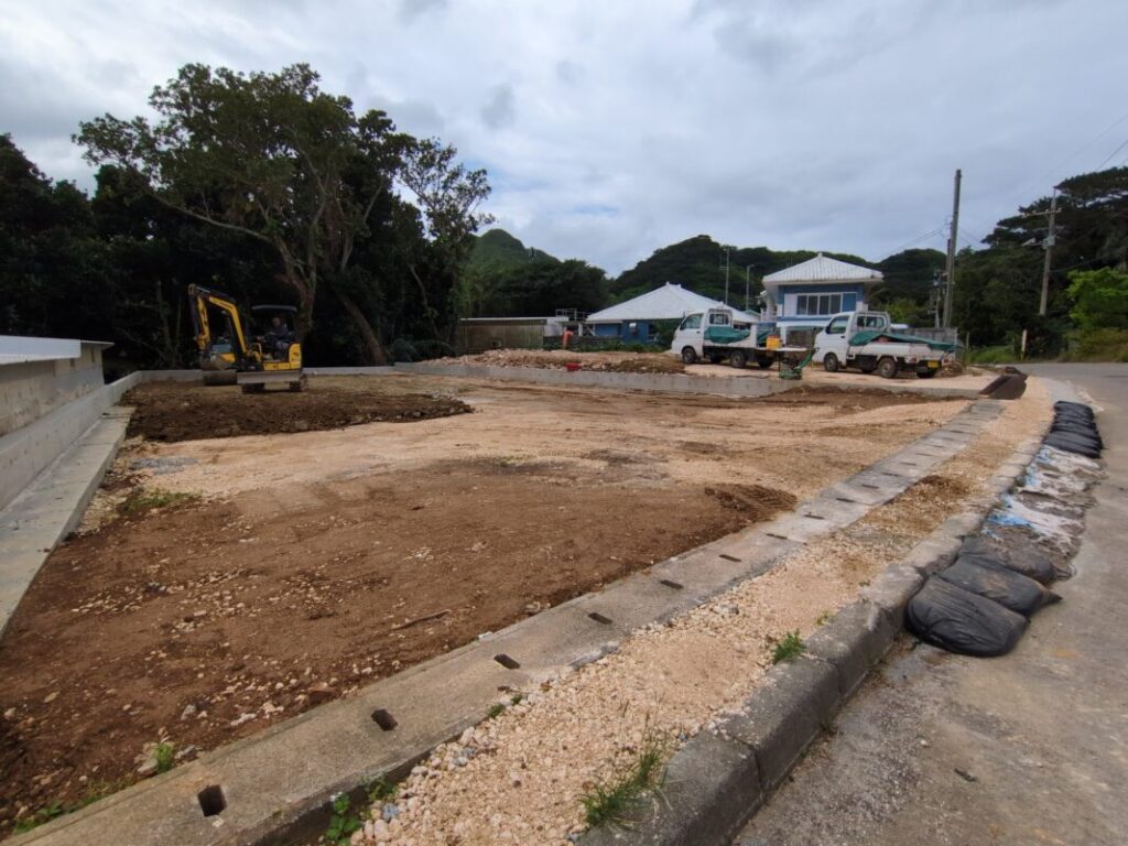 石垣市川平の注文住宅現場、昨今の建築基準法改正に伴う、確認申請業務の遅延の影響を少し受けましたが、ようやく土地の造成工事も完了し、基礎着工出来そうです。